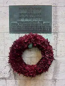 Memorial plaque for resistance members and wreath at the Bendlerblock, Berlin.