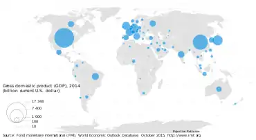 A map of world economies by size of GDP (nominal) in $US, IMF, 2014.