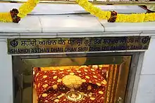 Guru Tegh Bahadur (1 April 1621 – 24 November 1675), revered as the ninth Nanak, was the ninth of ten Gurus of the Sikh religion. Tegh Bahadur continued in the spirit of the first guru, Nanak; his 115 poetic hymns are in the text Guru Granth Sahib. Tegh Bahadur resisted the forced conversions of Kashmiri Pandits and non-Muslims to Islam, and was publicly beheaded in 1675 on the orders of Mughal emperor Aurangzeb in Delhi for refusing to convert to Islam.