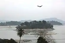 A view of Peacock Island, the smallest river island of the world, The Umananda temple is situated in this island