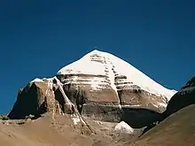 Mount Kailash - ...The landscape was dominated by the 25,000-foot peak of Gurla Mandhata; less striking, but far more famous, was the sacred Mount Kailash, 3,000 feet lower, which stands in majestic isolation apart from the Himalayan range.