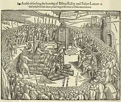 Hugh Latimer (c. 1487 – 16 October 1555) was a British clergyman, Bishop of Worcester, and Protestant martyr during the reign of Mary I of England. He was burnt at the stake.