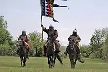 - They cover their heads with round caps, and their shaggy legs with the skins of kids; their shoes are not made on any lasts, but are so unshapely as to hinder them from walking with a free gait. And for this reason they are not well suited to infantry battles, but are nearly always on horseback, their horses being ill-shaped, but hardy; and sometimes they even sit upon them like women if they want to do anything more conveniently. There is not a person in the whole nation who cannot remain on his horse day and night. On horseback they buy and sell, they take their meat and drink, and there they recline on the narrow neck of their steed, and yield to sleep so deep as to indulge in every variety of dream. And when any deliberation is to take place on any weighty matter, they all hold their common council on horseback. They are not under the authority of a king, but are contented with the irregular government of their nobles, and under their lead they force their way through all obstacles.
