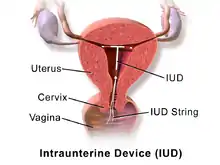 An intrauterine device (IUD), also known as intrauterine contraceptive device (IUCD or ICD) or coil, is a small, often T-shaped birth control device that is inserted into the uterus to prevent pregnancy.