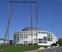 Isa Genzken, c. 1992: 'Spiegel / Mirror', steel sculpture near Bielefeld city hall; - quote of Isa Genzken, 1990 (title of her show): 'Everyone Needs at Least One Window'