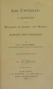 Isis Unveiled: A Master-Key to the Mysteries of Ancient and Modern Science and Theology, published in 1877, is a book of esoteric philosophy and Helena Petrovna Blavatsky's first major work and a key text in her Theosophical movement.