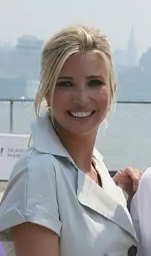 Ivanka Marie Trump (October 30, 1981 –) is an American businesswoman and the daughter of former President Donald Trump; she was a senior advisor in his administration, and also was the director of the Office of Economic Initiatives and Entrepreneurship. She is the daughter of Trump's first wife, Ivana, and is the first Jewish member of a first family, having converted before marrying her husband, Jared Kushner. She was previously an executive vice president of the family-owned Trump Organization. She was also a boardroom judge on her father's TV show The Apprentice.