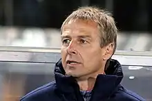 Jürgen Klinsmann (born 30 July 1964) is a German soccer manager and former player who is currently the head coach of the United States national team. As a player, Klinsmann played for several prominent clubs in Europe and was part of the West German team that won the 1990 FIFA World Cup and the unified German team that won the 1996 UEFA European Championship. One of Germany's premier strikers during the 1990s, he scored in all six major international tournaments he participated in, from Euro 1988 to 1998 World Cup.