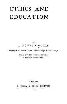 - No country is without popular heroes. America has at least one. Like young Lochinvar he "has come out of the West." He is in Chicago at present. His name is J. Howard Moore [...] He became a hero by a book. It happened this way. One day the Illinois Legislature passed a bill compelling teachers to instruct their pupils in morals, thirty minutes a week. Forthwith there was a panic. Ladies' hearts fluttered and men's lips dropped naughty words. Nobody in Illinois knew how to teach morals. Nobody? Just one. J. Howard Moore.