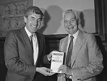 Jan Tinbergen (right) and premier Lubbers at a conference NOVIB "Weapons and well-being," 1987