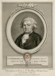 Jean Anthelme Brillat-Savarin (1 April 1755, Belley, Ain – 2 February 1826, Paris) was a French lawyer and politician, and gained fame as an epicure and gastronome: "Grimod and Brillat-Savarin. Between them, two writers effectively founded the whole genre of the gastronomic essay."[citation needed]