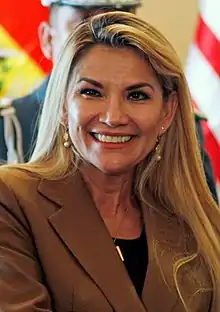 Jeanine Áñez Chávez (born 13 August 1967) is a Bolivian politician and lawyer who is the current acting President of Bolivia after the resignation of the government of Evo Morales after a Washington backed military coup.