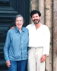 photo, 1992: John Cage and Michael Bach in Assisi, Italy