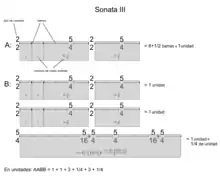 graphic illustration the structural proportions in Sonata III of 'Sonatas and interludes', written by John Cage between 1946-48