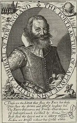 Captain John Smith (baptized 6 January 1580 – 21 June 1631) Admiral of New England was an English soldier, explorer, and author. He was knighted for his services to Sigismund Bathory, Prince of Transylvania and friend Mózes Székely. He is remembered for his role in establishing the first permanent English settlement in North America at Jamestown, Virginia, and his brief association with the Virginia Indian[1] girl Pocahontas during an altercation with the Powhatan Confederacy and her father, Chief Powhatan. He was a leader of the Virginia Colony (based at Jamestown) between September 1608 and August 1609, and led an exploration along the rivers of Virginia and the Chesapeake Bay.