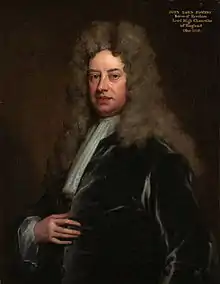 John Somers, 1st Baron Somers (4 March 1651 – 26 April 1716) was an English Whig jurist and statesman. Somers first came to national attention in the trial of the Seven Bishops where he was on their defence counsel. He published tracts on political topics such as the succession to the crown, where he elaborated his Whig principles in support of the Exclusionists. He played a leading part in shaping the Revolution settlement. He was Lord High Chancellor of England under King William III and was a chief architect of the union between England and Scotland achieved in 1707 and the Protestant succession achieved in 1714. He was a leading Whig during the twenty-five years after 1688; with four colleagues he formed the Whig Junto.