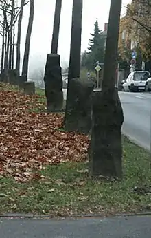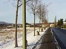 Joseph Beuys, after 1982: '7,000 Oaks along the street Wegmannstraße - at the left in the middle the graveyard 'Kassel-Harleshausen', and at the background the wood 'Habichtswald' - photo by Keichwa