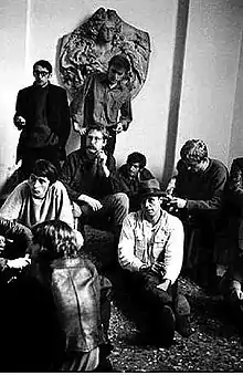Joseph Beuys, 1969, in discussion with students at the art Academy in Düsseldorf, 7 May 1969 - one day before the definite closing