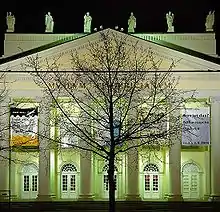 Joseph Beuys, 1982: '7,000 Oaks / Eichen', at Documenta 7; first planted oak of the 7000, here by night, in front of the Kasseler Museum Fridericianum