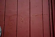 Beuys, 1972 Beuys 1972: 'Exit', an inscription, he made in 1972 in the wooden church-door of the St. Vituskirche in Münster, Mönchengladbach