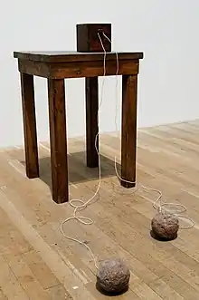 Beuys, 1958: his installation art 'Table with Accumulator', made in 1958 - Location: museum Tate Modern
