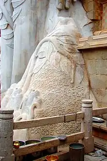 - As the inscription cannot be read easily, a replica [has been] readied in the Memorial Hall to give all information contained in it.