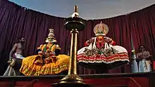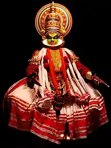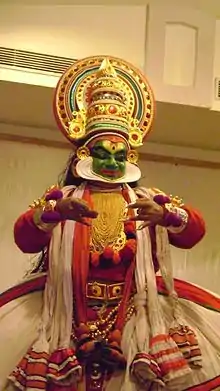 Kathakali (Malayalam: കഥകളി, kathakaḷi; Sanskrit:कथाकेळिः, kathākēḷiḥ) is a stylized classical Indian dance-drama that has its origin in Kerala. It is noted for the attractive make-up of characters, elaborate costumes, detailed gestures and well-defined body movements presented in tune with the anchor playback music and complementary percussion. It originated during the 17th century and has developed over the years with improved looks, refined gestures and added themes besides more ornate singing and precise drumming.