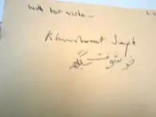 Khushwant Singh's Autographed Card
