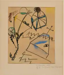 - Then we went down to his work room, in the horrible beautiful Merz grotto [Merz-Haus / MerzBau, built by Schwitters in Hannover as his studio], where broken wheels paired with matchboxes, wire lattices with brushes without bristles, rusted wheels with curious Merz cucumbers.. .How often did we 'p-lay' in this room! Schwitters called playing, considering the sweat, working. There we glued [collages] together our paper pictures, and as I tossed away one of my glued-together works one morning, Schwitters asked, 'You don't like it? Can I have it?' – 'What do you want with this failed piece of toast?' Schwitters took a good look at it and said, 'I'll put what's on top on the bottom, I'll stick a little Merz nose in this corner and I'’ll sign the bottom Kurt Schwitters.' And, yes indeed, this collage became a wonderful picture by Kurt Schwitters. Schwitters was a wizard, just as Hokusai was a wizard.