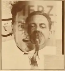 - Schwitters, in discussion with political Dadaists as Huelsenbeck.