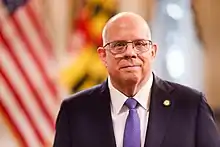 Lawrence Joseph "Larry" Hogan, Jr. (born 25 May 1956) is an American politician serving as the 62nd governor of Maryland since 2015. A member of the Republican Party, Hogan was secretary of appointments under Maryland Governor Bob Ehrlich from 2003 to 2007, and served as Chair of the National Governors Association from 2019 to 2020.