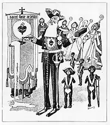 Cartoon depicting Leopold II laying the first stone of the Basilica of the Sacred Heart, Brussels.