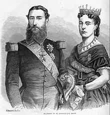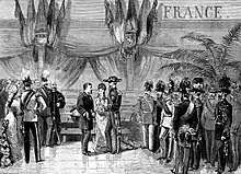 Visit of the international exhibition in Brussels by King Leopold II of Belgium and Queen Marie-Henriette on September 27, 1876