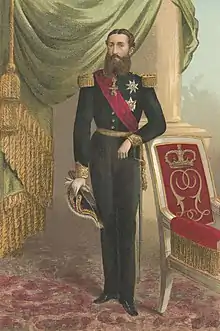 Leopold Lodewijk Philip Maria Victor (Brussels, April 9, 1835 – Laeken, December 17, 1909), Prince of Belgium, Duke of Saxony, Prince of Saxe-Coburg and Gotha, Duke of Brabant and Senator of Belgium, was the second King of the Belgians. He was the second but eldest surviving son of Belgium's first king Leopold I of Belgium and Queen Louise Marie of Orléans. He succeeded his father to the throne on December 17, 1865 and remained king until his death in 1909. Leopold II was also the founder and King sovereign of the Congo Free State, which he obtained through the Berlin Conference.