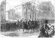 King Leopold II of Belgium and Queen Marie-Henriette reviewing the troop.