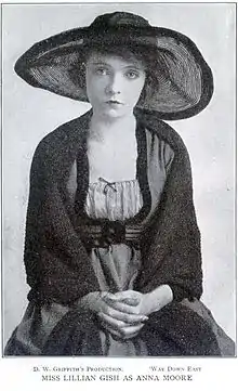 Lillian Diana Gish (October 14, 1893 – February 27, 1993), the "First Lady of American Cinema", was an American actress of the screen and stage, as well as a director and writer. Regarded as the greatest silent film actress and one of the greatest actresses in cinema history, Gish is credited with pioneering fundamental film performing techniques.