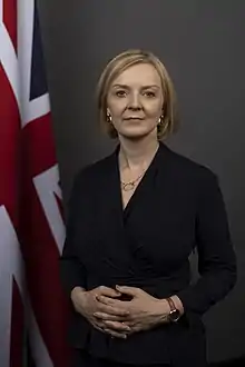 Mary Elizabeth Truss (born 26 July 1975), known as Liz Truss, is a former Prime Minister of the United Kingdom and Leader of the Conservative Party. She resigned from these posts on 20 October 2022, after only six weeks. Before her appointment as the British PM on 6 September 2022, in succession to Boris Johnson, she served as Secretary of State for Foreign, Commonwealth and Development Affairs from September 2021. Earlier in her career, she held posts as Secretary of State for International Trade and President of the Board of Trade from July 2019 in Boris Johnson's cabinet. Following the resignation of Amber Rudd, she gained the additional position as the Minister for Women and Equalities in September 2019.
