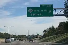 M-102 is an east–west state trunkline highway in the US state of Michigan that runs along the northern boundary of Detroit following 8 Mile Road. The highway follows the Michigan Baseline, a part of the land survey of the state, and the roadway is also called Base Line Road in places. As a county road or city street, 8 Mile Road extends both east and west of the M-102 designation, which leaves 8 Mile on the eastern end to follow Vernier Road. The western terminus of M-102 is at the junction of 8 Mile Road and M-5 (Grand River Avenue) and the opposite end is at Vernier Road and Interstate 94 (I-94). The 8 Mile Road name extends west to Pontiac Trail near South Lyon with a discontinuous segment located west of US Highway 23 (US 23). The eastern end of 8 Mile Road is in Grosse Pointe Woods, near I-94, with a short, discontinuous segment east of Mack Avenue.