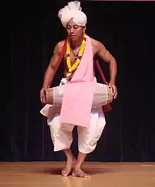 Manipuri dance is one of the seven major traditional Indian classical dance forms from Manipur, a state in north-eastern India. The dance form developed its own specific aesthetics, values, conventions and ethics. The cult of Radha and Krishna, particularly the raslila, is central to its themes but the dances, unusually, incorporate the characteristic symbols (kartal or manjira) and double-headed drum (pung or Manipuri mrdanga) of sankirtan into the visual performance.
