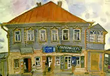 Chagall, 1917: 'Vitebsk / Падуанскага, бакавы фасад', painting, probably on cardboard