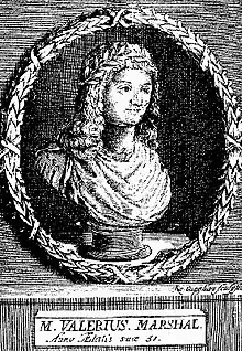 Marcus Valerius Martialis (March, between 38 and 41 AD–between 102 and 104 AD) was born at Bilbilis, a small town in the north-east of Spain (Hispania). He is commonly known in the English speaking world as Martial. He was a scathing satirist, often writing highly derogatory poems of his acquaintances — including his patrons — which he published under the title of Epigrammata. Though not the first Roman poet to write in an epigrammatic style he is widely considered to have brought the epigram to its acme as a literary genre; thus he is rightly considered the 'Father of the Epigram.'