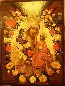 Most images of the Virgin stress her role as Christ’s Mother, showing her standing and holding her son. The manner in which the Virgin holds Christ is very particular. Certain poses developed into “types” that became names of sanctuaries or poetic epithets. Hence, an icon of the Virgin was meant to represent her image and, at the same time, the replica of a famous icon original. ~ Metropolitan Museum of Art