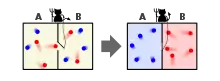 - Now let us suppose that such a vessel is divided into two portions, A and B, by a division in which there is a small hole, and that a being, who can see the individual molecules, opens and closes this hole, so as to allow only the swifter molecules to pass from A to B, and only the slower molecules to pass from B to A. He will thus, without expenditure of work, raise the temperature of B and lower that of A, in contradiction to the second law of thermodynamics.