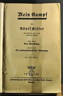 Mein Kampf [My Struggle] is a book by Adolf Hitler, combining elements of autobiography with an exposition of Hitler's political ideology of National Socialism. Volume 1 of Mein Kampf was published in 1925, with volume 2 in 1926.
