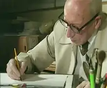 Fernand Berckelaers (1901, Antwerp – 1999, Paris), pseudonym Michel Seuphor (anagram of Orpheus), was a Belgian painter, draughtsman, and a designer of carpets. He wrote several books on the history and development of modern abstract art and used all the contacts he had with many abstract artists in Europe and the U.S.
