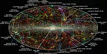 The work, published in the September 4th Nature, is the first to trace our local supercluster on such a large scale. It also provides a physical way to define what a supercluster actually is.- Camille M. Carlisle in: "Laniakea: Our Home Supercluster" at Sky and Telescoe", skyandtelescope.com, 3 September 2014