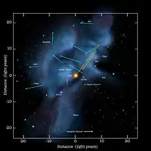 360-degree panorama view of the Milky Way Galaxy...The Milky Way would girdle the heavens as before; some of our familiar constellations, such as Orion, would be little changed, though others would be greatly altered by the shifting of the nearer stars. An unfamiliar brilliant star, between Cassiopeia and Perseus would be—the Sun. Looking back at it with our telescopes, we could photograph its spectrum, observe its motion among the stars, and convince ourselves that it was the same old Sun; but what had happened to the rest of our planetary system we would not know. - Henry Norris Russell.