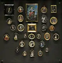 A portrait miniature is a miniature portrait painting, usually executed in gouache, water colour, or enamel. Portrait miniatures developed out of the techniques of the miniatures in illuminated manuscripts, and were popular among 16th-century elites, mainly in England and France, and spread across the rest of Europe from the middle of the 18th-century, remaining highly popular until the development of daguerreo types and photography in the mid-19th century... - George C. Williamson