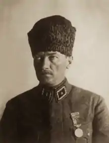 Kemal Atatürk (or alternatively written as Kamâl Atatürk, Mustafa Kemal Pasha until 1934, commonly referred to as Mustafa Kemal Atatürk; 1881 – 10 November 1938) was a Turkish field marshal and revolutionary statesman who was the founder and first President of the Republic of Turkey. His benevolent dictatorship undertook sweeping progressive reforms, which modernized Turkey into a secular, industrializing nation. Ideologically a secularist and nationalist, his policies and theories became known as Kemalism. Due to his military and political accomplishments, Atatürk is regarded according to studies as one of the greatest leaders of the 20th century.