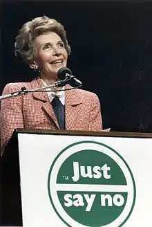 - Her most famous moment as First Lady came almost by accident: the Just Say No campaign against drug use at a time when abuse was running out of control. "I was in California and I was talking to, I think, fifth graders, and one little girl raised her hand and said, 'Mrs. Reagan, what do you do if somebody offers you drugs?' And I said, 'well, you just say no.' And there it was born. I think people thought that we had an advertising agency over who dreamed that up — not true." Reagan called her "my secret weapon" in his fight against drug use.